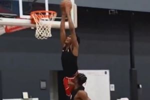 秀暴扣!阿门-汤普森与多米尼克-巴洛等人一起训练 身体对抗出色