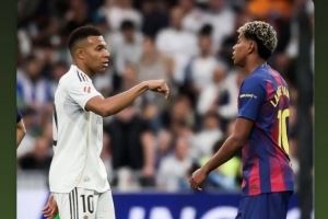 曼联15岁前锋JJ-加布里埃尔也在关注西班牙国家德比,他在社交媒体上转发姆巴佩、亚马尔的赛场照片。
